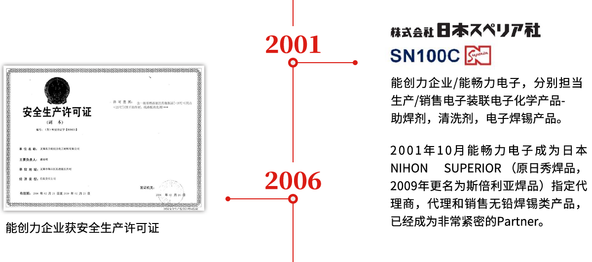 2001年,能創(chuàng)力公司創(chuàng)立了下屬企業(yè)無錫能暢力電子有限公司 ,該公司為貿易公司,是日本NIHON SUPERIOR指定的代理商,代理和銷售SN100C無鉛焊錫類產品,已經成為非常緊密的Partner。